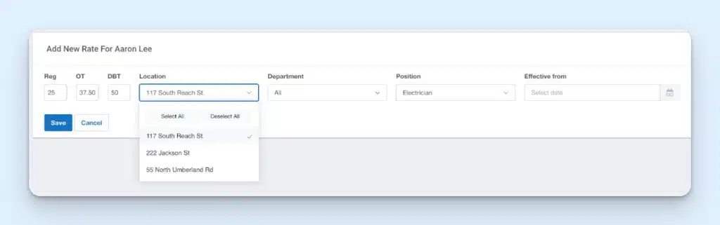For instance, in Buddy Punch, you can set up multiple pay rates for employees based on which site they’re working at, when, and in what role.